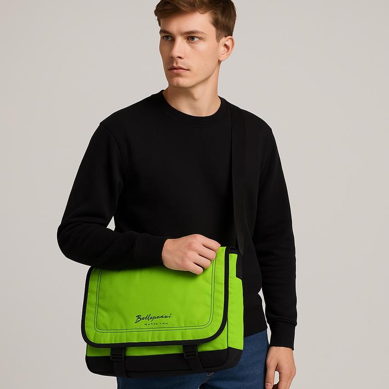 Стильна чоловіча сумка-месенджер у яскраво-салатовому кольорі з чорними вставками. Закривається на клапан із двома фастексами та основну блискавку. Виготовлена з щільного, вологостійкого матеріалу (нейлон/поліестер), добре тримає форму. Всередині — просторе відділення, кишеня на блискавці та окремий відсік на липучці. Зручний регульований ремінь із м’якою вставкою для плеча. Сумка ідеально підходить для міського ритму життя: навчання, роботи, подорожей. Бренд Baldessarini — гарантія якості та стилю. Розмір 40×30×10 см Колір: лаймовий / салатовий із чорним