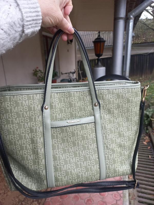 Нова, тільки відсутній рідний довгий ремінь, поставила чорний, також підходить, так як на сумці є елементи чорного. Відповім на всі питання.