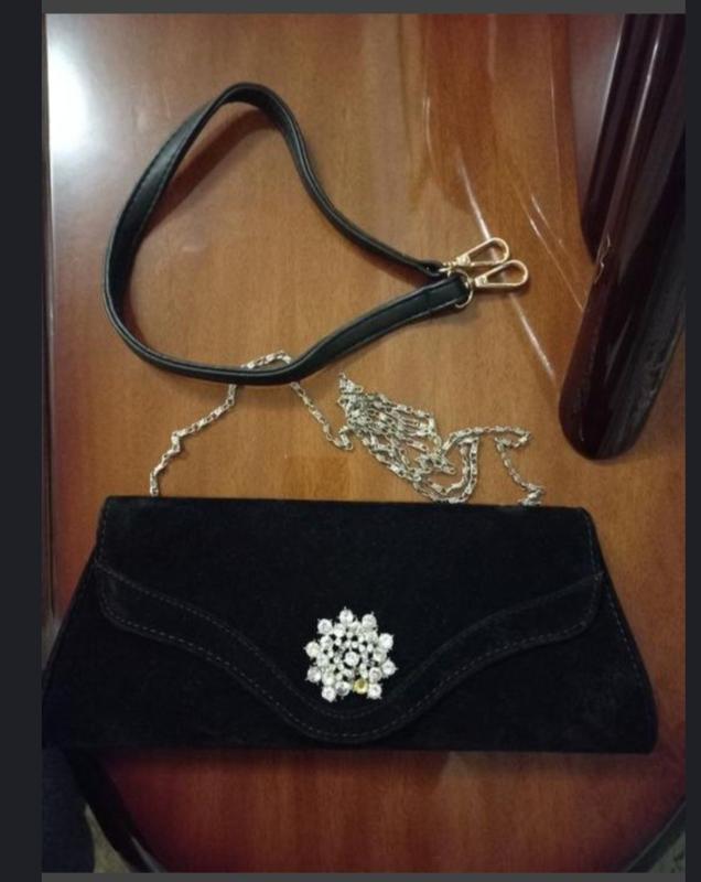 В хорошому стані клач, маленький нюанс ( кілька каменів немає), штучний замш, два ремінця йде. довжина-30 см висота-12.5 див.