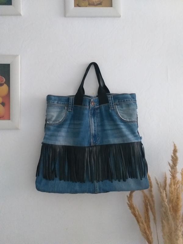 Ручная работа в стиле Апсайкл. Сумка шоппер стильная. умистка.