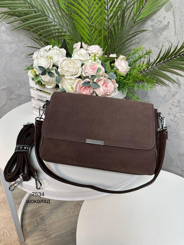 ЗАМЛЛЕНИЕ С ОПЛАТОЮ ПРИ ДОСТАВЦЕ ТОЛЬКО НОВОЙ ПОШТОЙ УТОЧНЯЙТЕ НА ВСЯК СРЕДСТВО НАЯВНОСТЬ 🔸Сумочка на три отделения. 🔸Нат.замша/ сзади эко.кожа. 🔸Ширина 26см., высота 18 см., дно 7 см.,ремешок регулируется до 145 см.,короткий ремешок 58см. 🔸Три отдельных отделения. 🔸Клапан на магните Код 7534