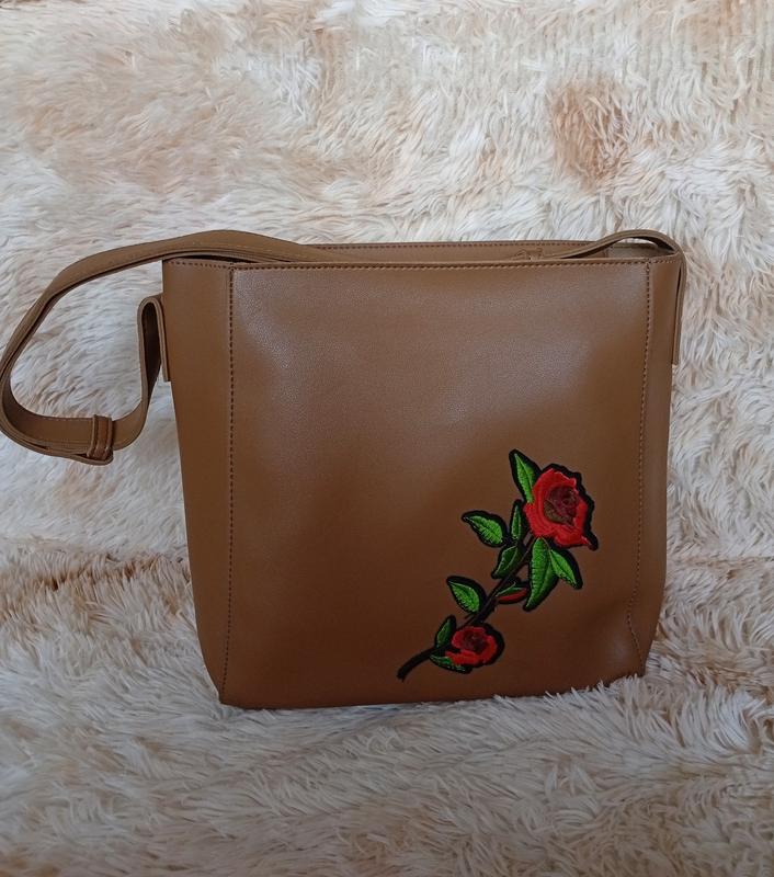 Б у в хорошому стані Стильна сумка з вишивкою Матеріал : якісний шкірозаміник Ручка з регулюванням довжини В середині без підкладки Одне відділення Застібка блискавка ( робоча) Заміри Довжина 36см Висота 29см Ширина дна 11,5см Оплата на карту Приват банку Доставка Укр пошта або Нова пошта Обміну та повернення немає