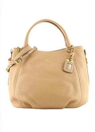На зображенні — сумка-тоут Prada з коричневої шкіри Vitello Daino. Сумка виготовлена з текстурованої м'якої шкіри Vitello Daino. Вона має дві ручки та металеві ніжки. Підкладка виконана з нейлону. Логотип бренду розташований спереду. Ширина по центру- 41 см Висота- 30 см Ширина по дну- 12.5 см Висота ручок- 17.5 см