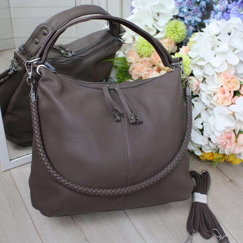 Жіноча стильна та якісна сумка мішок з еко шкіри мокко