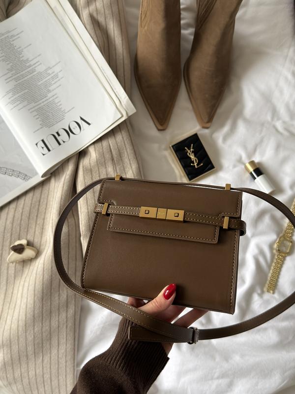 Saint laurent manhattan mini leather shoulder bag brown 19х15х6
