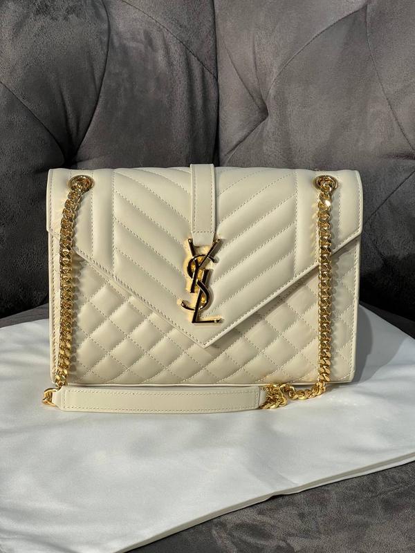 Сумка конверт люкс якість брендова біла лого їв сен лоран