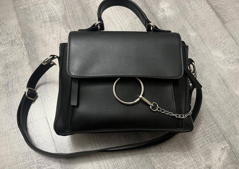 Сумка крос-боді з кільцем і ланцюжком Крос-боді декорована кільцем на ланцюжку, який кріпиться до верхньої частини. Всередині два великих відділення і кишеня на блискавці. На зворотному боці також є кишеня. У комплекті є довгий ремінь. Дуже місткий і лаконічний варіант. Розмір: 19 см х 27 см