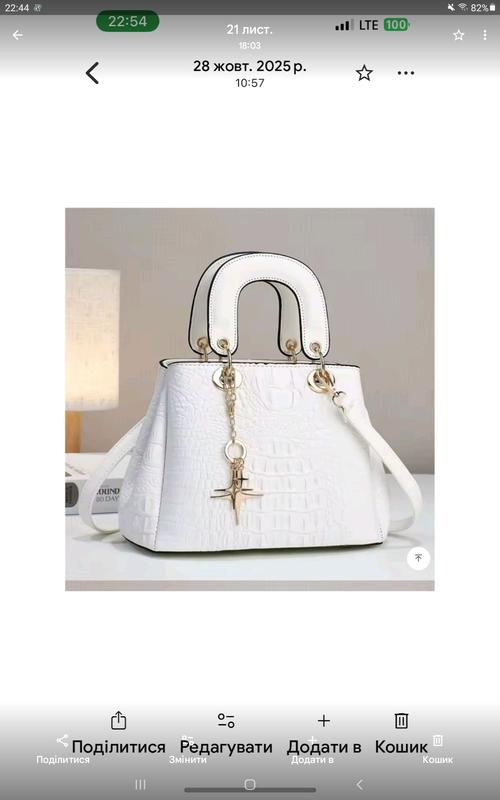 Сумочка біла дуже гарненька нова але в середині сумки кишенька і там зламався бігунок я случайно його зламала але бігунка можна замінити