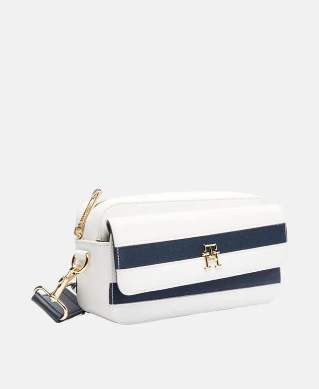 Лаконичный дизайн с фирменными полосами Компактная, но вместительная • Качественная экокожа • Золотая фурнитура • Длинный ремешок + короткая ручка • Оригинальный логотип