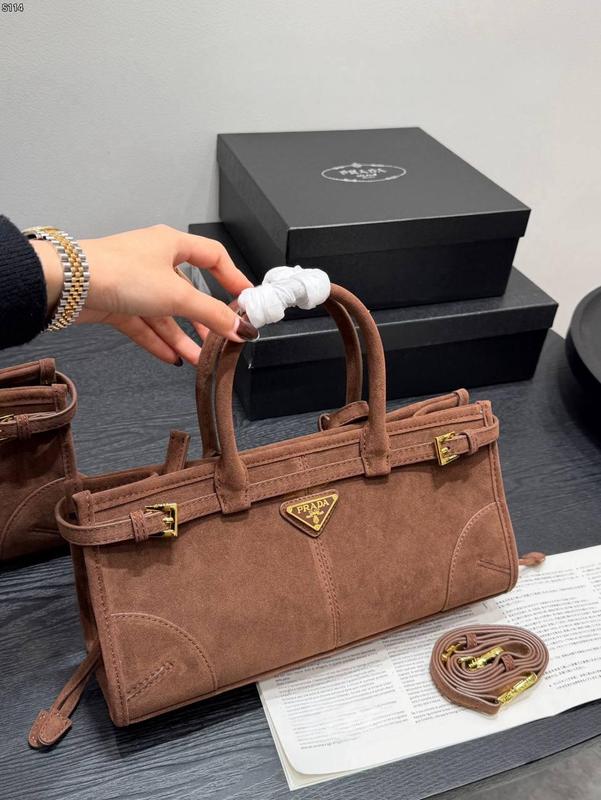 Prada bonnie medium suede handbag chocolate