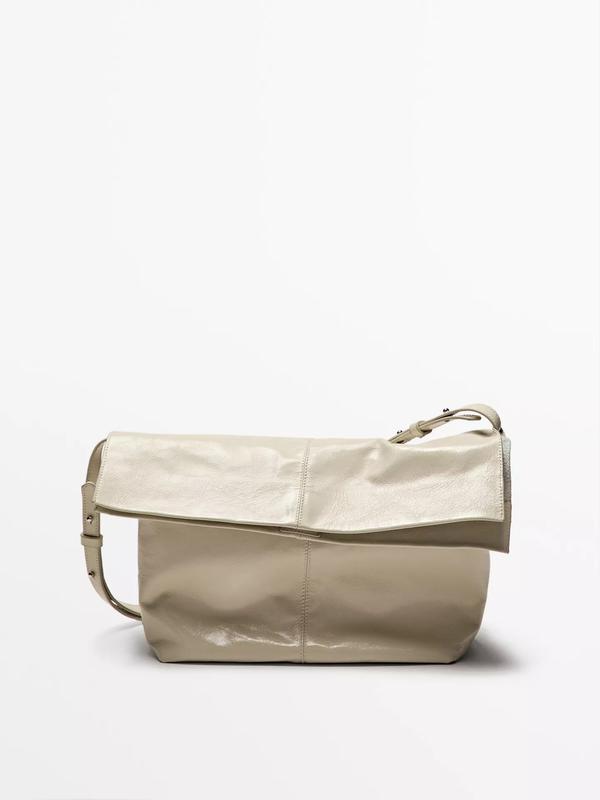 Сумочка з коров’ячої шкіри . Застібається на магнітну застібку-кнопку. Регульований ремінець. Одна внутрішня кишеня. Шкіряна деталь із кракелюровим ефектом. Висота x довжина x ширина: 26 x 37 x 16 см, нова сумка така зараз на сайті коштує 5600