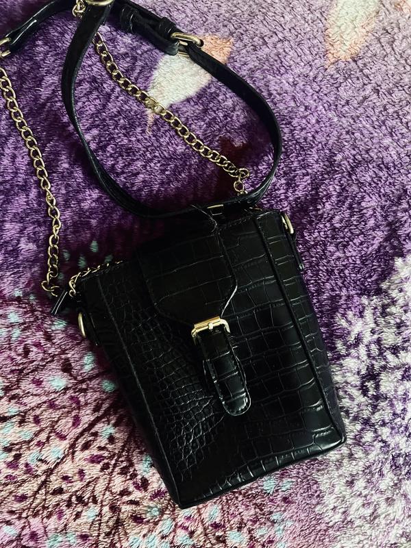 Жіноча чорна сумочка на довгому золотому ланцюжку.Чудово підійде як для повсякденного образу,так і для вечірнього