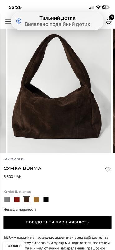 Натуральна замша, подарували нову, тому цб вирішила продати.у користуванні була загалом місяці 3. Колір дуже гарний,як на фото