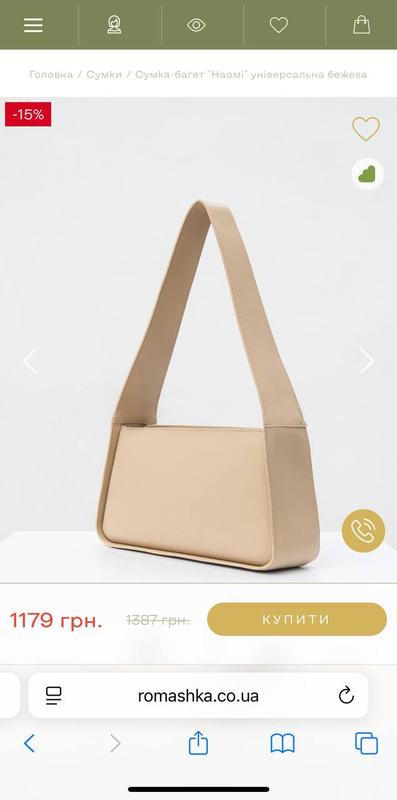 Сумка багет «Наоми» универсальная бежевая от украинского бренда Romashka. Удобная, подходит под все образы - базовая сумка в гардеробе Состояние отличное, нюанс на последнем фото