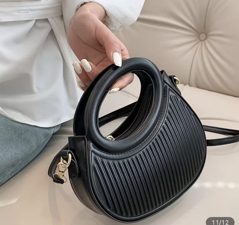Жіноча кругла сумка через плече з подвійною ручкою та одним плечем - Елегантна ручна сумка для поїздок на роботу, побачень - Застібка-блискавка, стиль французької леді, чорна нішева сумка