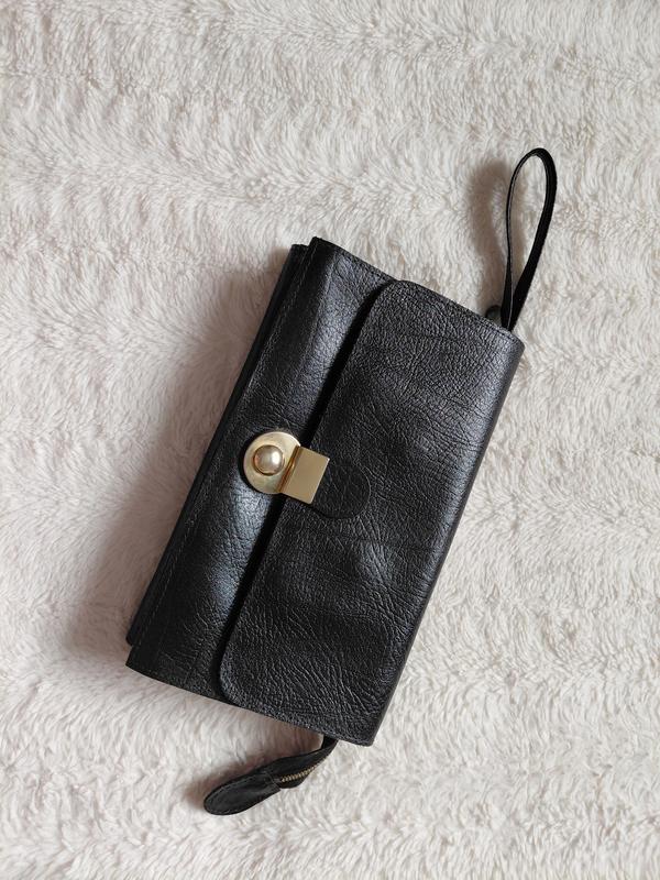 шкіряний клатч, сумка на зап'ясток, середнього розміру але дуже містка, поміститься і телефон і документи, і картки з готівкою, дуже стильна)