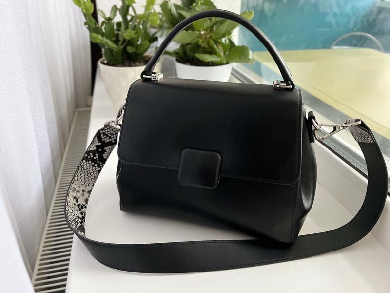 Чорна шкіряна сумка в ідеальному стані Чорно-білий ремінець під пітона 24х19х12 см