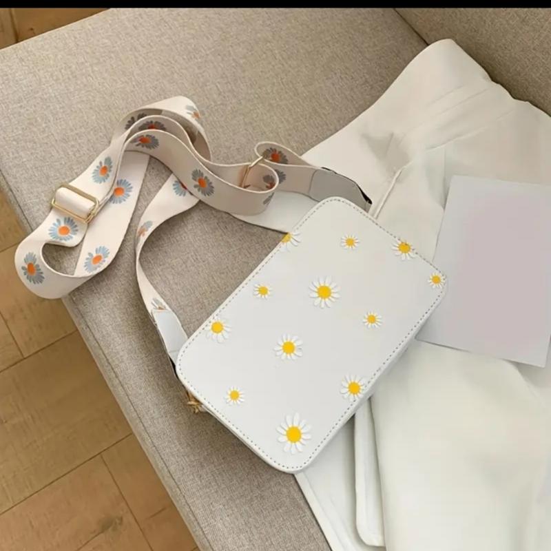 Цікава сумка в ромашки з одного боку, з іншого біла 12×19см ремінь регулюється, один відділ