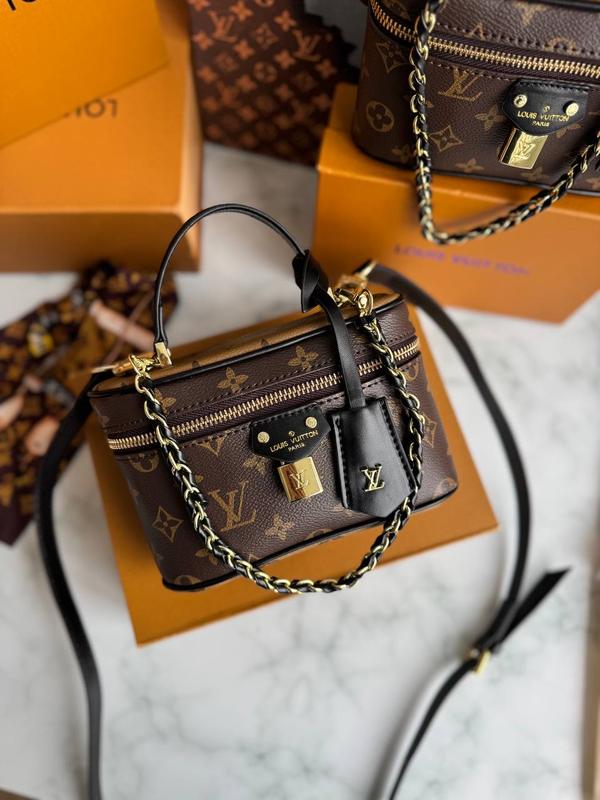 Louis Vuitton Vanity PM Brown •Матеріал - шкіра та фірмова канва; •Всі лого, всі тіснення; •Брендована, металева фурнітура; •Всі деталі знімні; •Розмір - 20х11х8 см; • Фірмова коробка, пильовик, документи,, замочек та ключик в комплекті🎁 хустинку можна придбати окремо +100 грн Для замовлення ⬇️