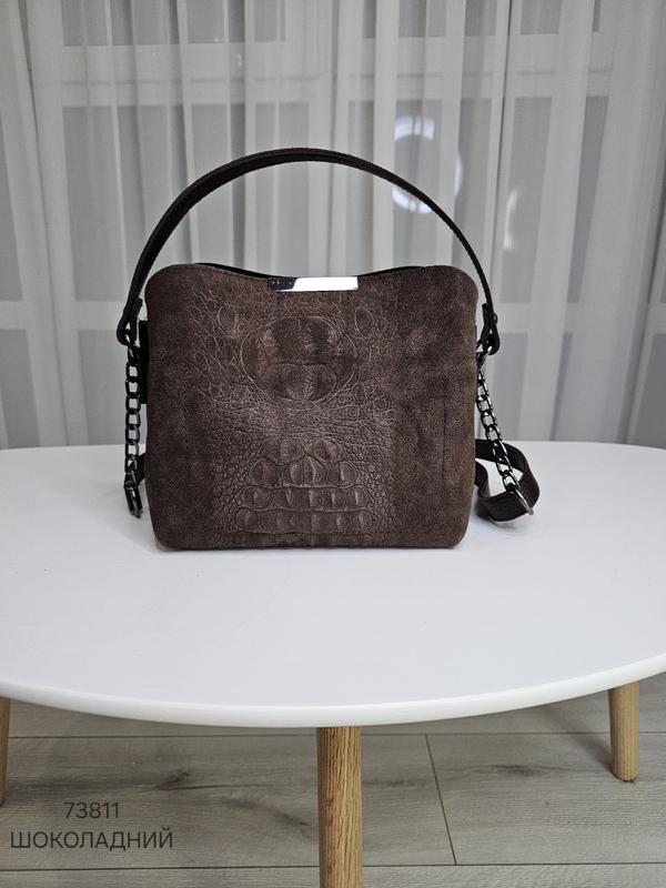 🆕️ крос боді на 3 відділи, з тисненням на НАТУР. ЗАМШІ 🆕️ КОД: 73811 950 грн ФУРНІТУРА: срібло, нікель РОЗМІРИ: Ширина по низу - 21,5 см, висота - 19,5 см, дно - 10 см + ручка і довгий ремінець (128 см) МАТЕРІАЛ: Тиснення на НАТУР. ЗАМШІ + турецька еко шкіра, підклад - щільна тканина СКЛАД: Три відділи, середній відділ зверху закривається на блискавку, а два інших відділи - на кнопку-магніт. Всередині є 3 відкритих кишені і 1 кишеня на блискавці.