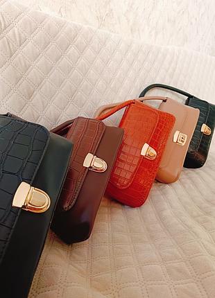 Сумка багет мини в разных цветах: - прессованная эко кожа - принт крокодил - держит форму - металлическая фурнитура - одно отделение