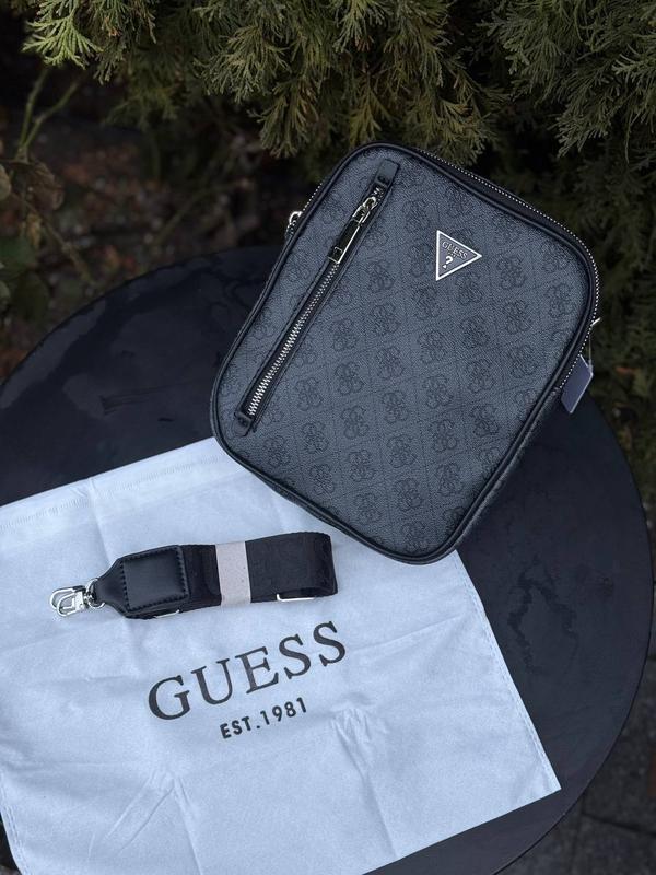 **Сумка через плече Guess** — стильний акцент для повсякденного образу 🖤 Компактна та зручна модель, яка ідеально підходить для щоденного використання. Лаконічний дизайн із фірмовим трикутним логотипом та брендованим принтом підкреслює сучасний стиль. 🔹 **Розмір:** 24 × 19 см 🔹 **Матеріал:** екошкіра 🔹 **Колір:** сірий Сумка має основне відділення на блискавці та додаткову фронтальну кишеню для зручного зберігання необхідних речей. Регульований ремінець дозволяє комфортно носити її через плече або на плечі. Практичний та стильний варіант для міста, подорожей чи щоденних справ ✨