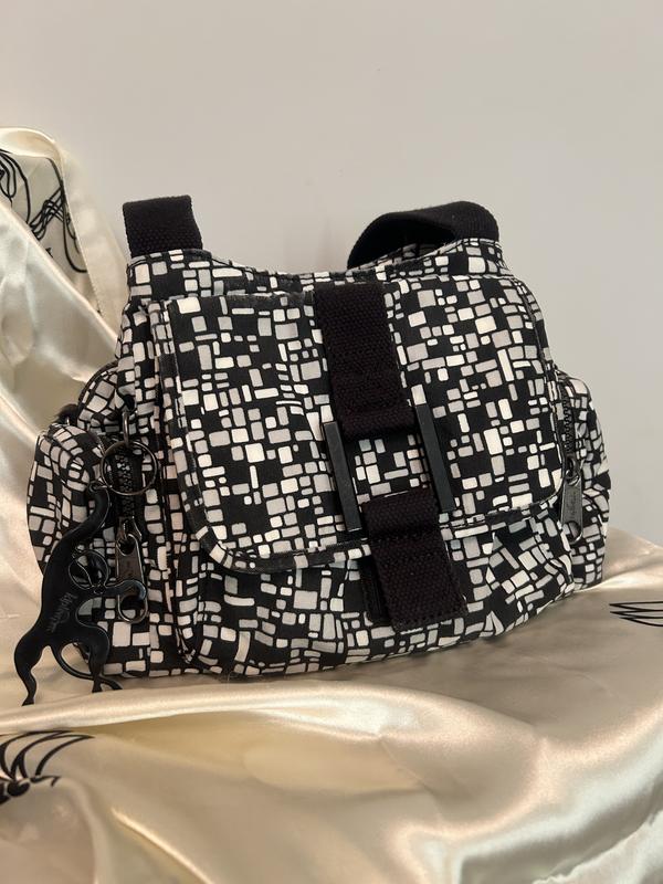 Сумка від Kipling оригінал, мавпочка присутня. Сумка не великого розміру 33/20, дуже легка та зручна. Має багато відділень. Все брендовані. По стану в середині все добре. Зовні є легкі сліди носіння по тканині, та великий ремінець відсутній.