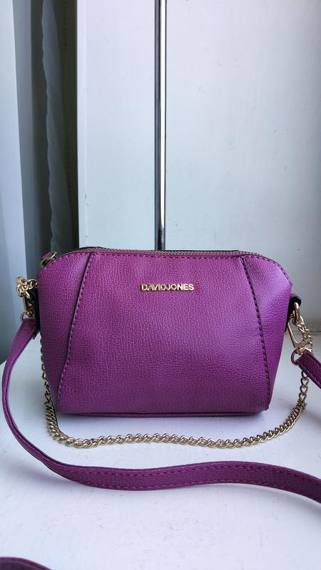 сумочка кросс-боди David Jones, яркого фиолетового цвета, закрывается на молнию, фурнитура под золото размер 20*13см.