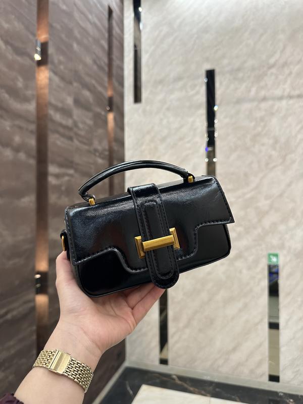 Стильна чорна сумка з акцентною формою та золотою застібкою. Має коротку ручку і довгий ремінець через плече. Компактна, але містка — поміститься телефон, гаманець і косметика. Виглядає дорого та акуратно, ідеальна на щодень і для виходу. Стан: новий