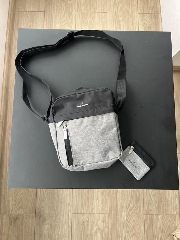 Продам практичний комплект: функціональна сумка через плече (месенджер) та компактний гаманець від відомого французького бренду Daniel Hechter. Стриманий двоколірний дизайн у сіро-чорних тонах ідеально підійде для повсякденного використання. В ідеальному стані