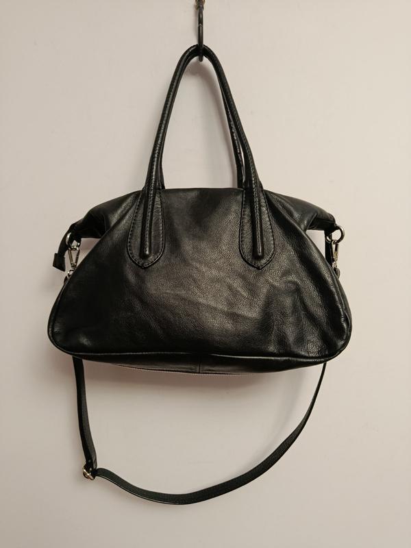 Елегантна жіноча сумка від бренду Pasito. Виконана з якісної натуральної шкіри з приємною зернистою текстурою. Модель дуже практична завдяки продуманій конструкції з декількома відділеннями. Матеріал: Натуральна шкіра (зовні), міцна текстильна підкладка (всередині). Колір: Класичний чорний. Ширина по дну~38 см Висота ~27 см Глибина 10-14 см. Дві надійні шкіряні ручки для носіння в руках. Знімний плечовий ремінь на карабінах (регулюється за довжиною). Основне відділення на блискавці. Дві додаткові зовнішні кишені на блискавках з боків для швидкого доступу до дрібниць. Всередині: потайна кишеня на блискавці та відкриті відділення для телефону чи дзеркальця. Фурнітура: Якісна, сріблястого кольору (металеві блискавки та карабіни). Сумка оснащена спеціальною круговою блискавкою, яка проходить через дно та бокові панелі. Вона дозволяє миттєво збільшити об'єм (глибину) сумки, якщо вам потрібно покласти всередину більше речей.