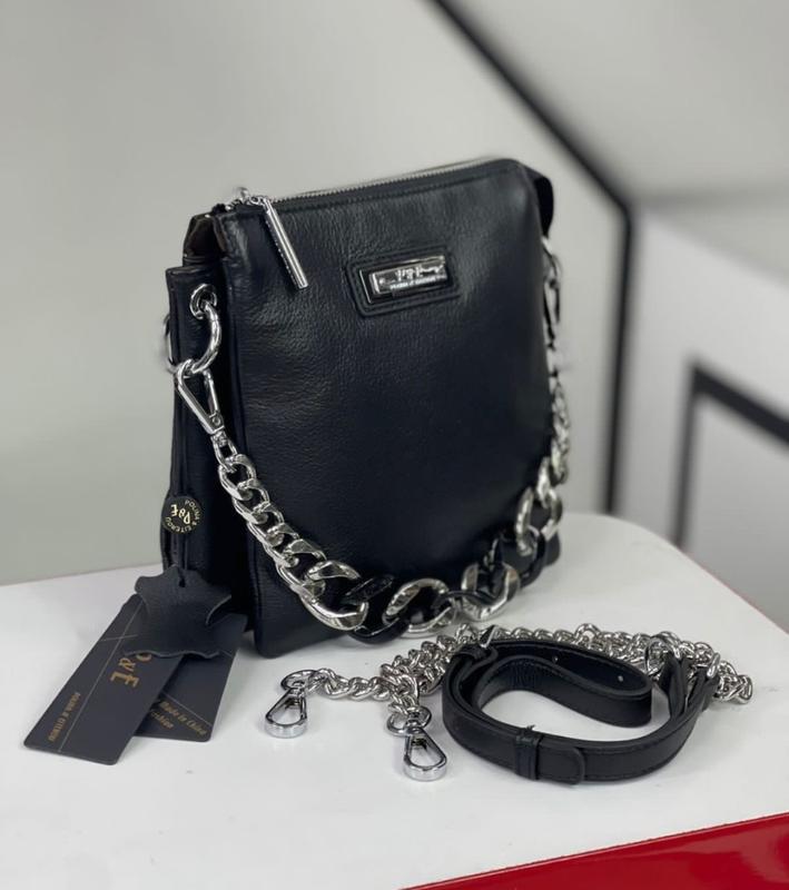 Шкіряна стильна сумка в доброму стані бу, єдині дефекти, це вже не в дуже доброму стані довгий ремінець, ланцюг обдертий) до цієї сумки можна причепити інший довгий ремінець або просто ланцюг, в цьому комфортність даної сумки))
