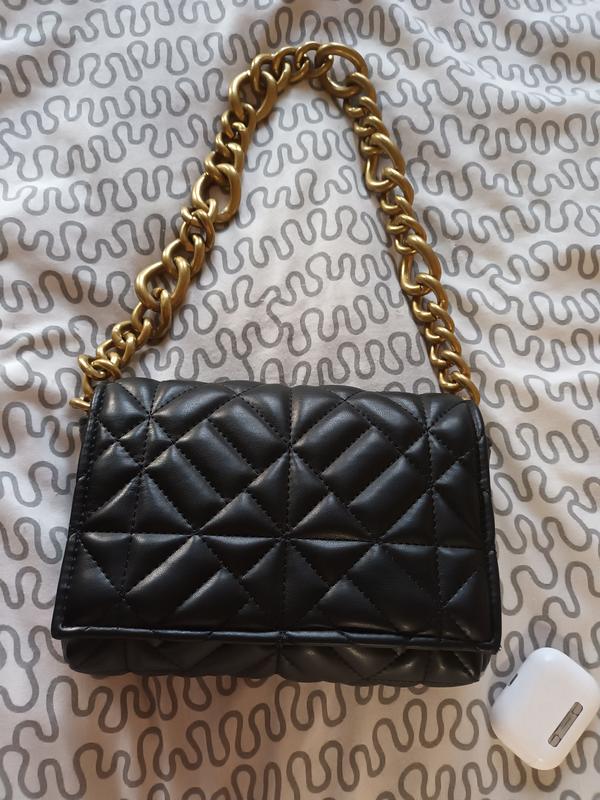 Красива сумка Zara, схожа на Шанель, маленька але вміщає все необхідне. В середині має одне маленьке відділення під візитки та маленьке дзеркальце. Вміщає телефон, ключі, серветки, і ще щось не велике. Торгу не має.