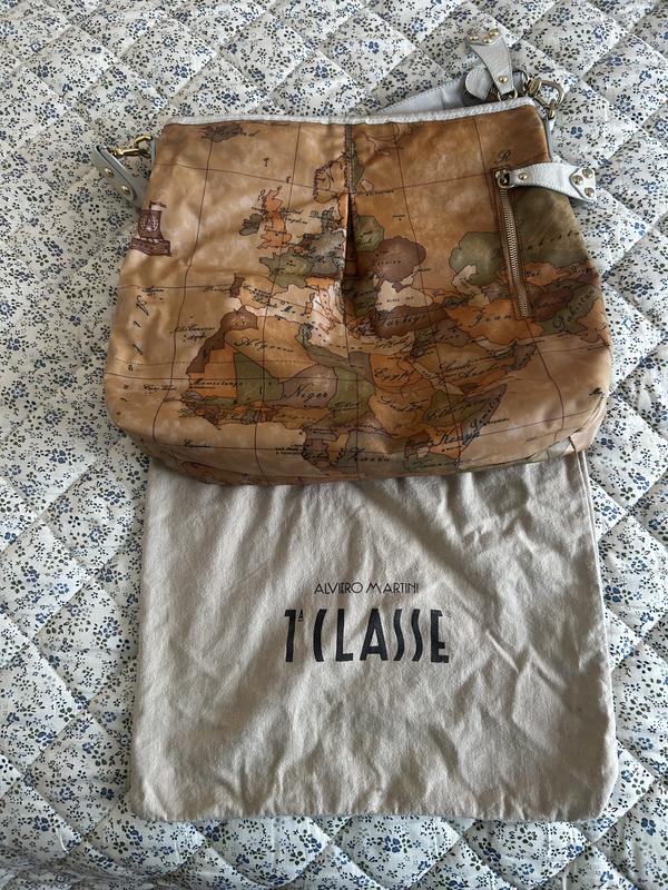 Ця сумка є жіночою сумкою через плече від бренду Alviero Martini 1^ Classe, яка вирізняється культовим принтом у вигляді географічної карти. Ціни від 200€