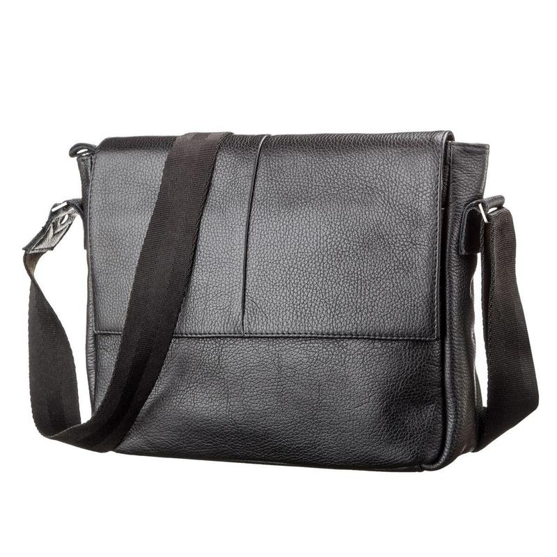 Материал: натуральная кожа; Цвет: черный; Размеры (ШхВхГ, см): 30х22х8; Страна производитель: Украина. Замечательная сумка в деловом стиле из качественной натуральной кожи. Сумка имеет просторное внутреннее отделение, в котором можно разместить документы формата А4 и даже небольшой ноутбук. Прочный текстильный ремень регулируется по длине. Особенности: - закрывается молнией и клапаном с магнитной кнопкой; - одно основное отделение с прорезным карманом на молнии и накладным кармашком; - с передней стороны под клапаном накладной карман; - задний карман на молнии; - текстильный регулируемый плечевой ремень; - подкладка из черной ткани. С этой сумкой Вы можете ходить на работу, деловые встречи, посещать занятия в университете. Она отлично дополнит Ваш стиль и станет любимым аксессуаром, благодаря своему высокому качеству.