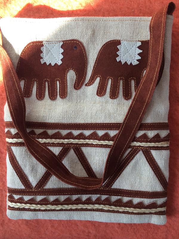 Сумка мешок, сделана с плотной ткани , узор сделан с искусственного замша, внутри подкладка , застёгивается на кнопку . Высота сумки 32 см, ширина 26 см, длина ручки 69 см.
