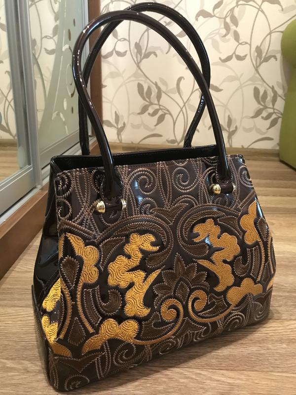 Пропонується до продажу сумка, нова, в комплекті йде довга ручка. Матеріал :лакова шкіра. На передній частині сумки вишивка. Розміри: Ш 16см, У 25см, Д 33см. Доставка в будь-яке місто новою поштою або укрпоштою.