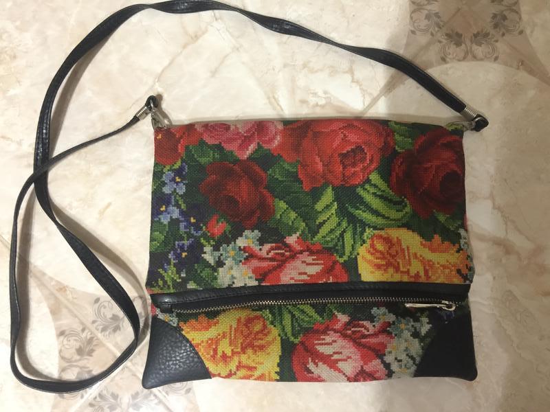 Яскрава,стильна,без дефектів,тканина і екокожа