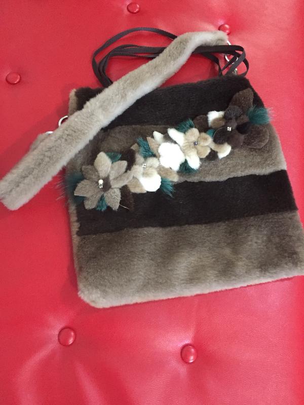 Хутряна сумка шопер!! Натуральне хутро, аплікація з квітів ручної роботи , авторська робота, є коротка ручка і довга!