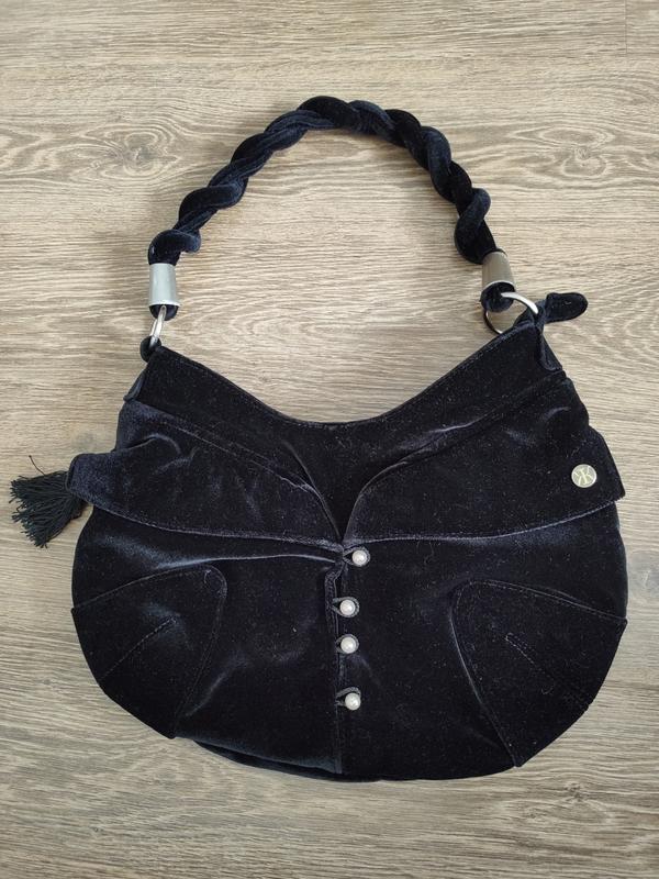 Сумка дуже красива, модна з чорного оксамиту, імітація застібки на перламутрові гудзики, стильна підкладка в смужку