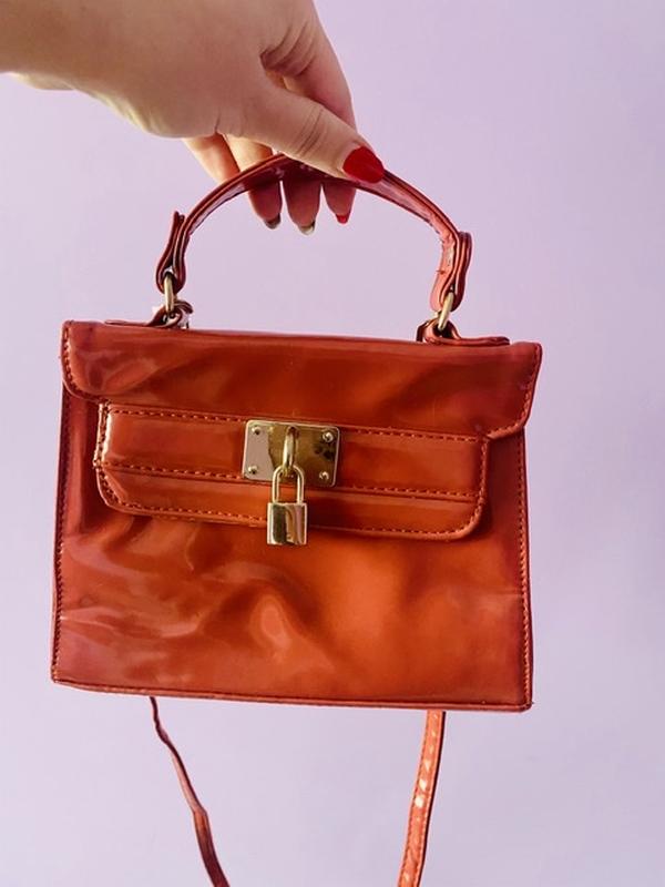 Маленька лакова сумочка коралового кольору. Висота- 16 Ширина - 21