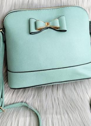 В наявності є кольори Витончена жіноча сумочка Матеріал еко шкіра Один основний відділ Дві додаткові кишені Ззаду прорізний кишеню на блискавці Спереду сумка декорована металевим бантом 19*20_23*8 Плечовий ремінь регулюється 135 см Ціна 270 грн