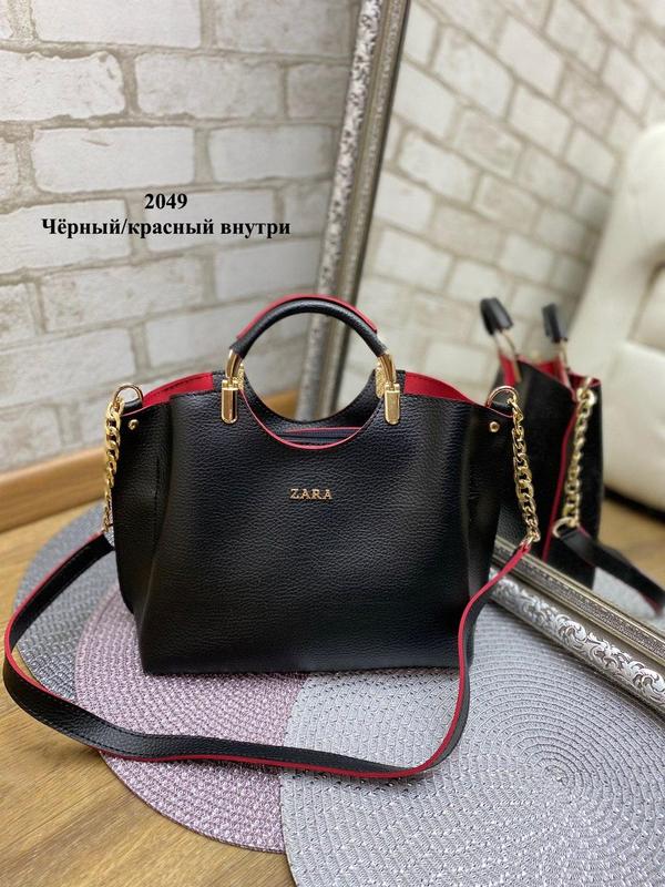 Код 2049. Шкірозамінник . 3️90 грн. Кольори: чорний з червоним краєм, чорний, бордо, червоний, синій, пудра, срібло 27 см ширина по дну. 33 см ширина вгорі. 22 см висота.11 см глибина . Три відділу: середнє на блискавці,всередині кишеня для телефону і внутрішня кишеня на блискавці,інші два відділення на кнопці . Довжина плечового ременя 90 див.