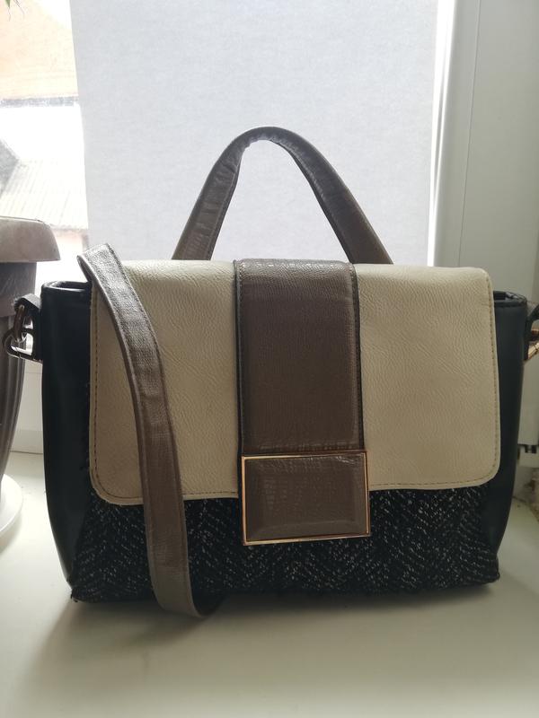 Сумка, дуже містка, є безліч кишеня для телефону так і для грошей, і додатково на замочку. Додатково є довгий ремінець