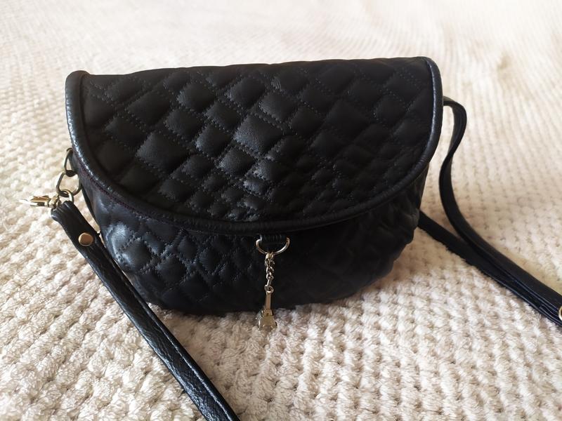 Маленька, але вмістка чорна сумочка. Розмір 18*25см. Ремінець не відщіпається( див. останнє фото) Має 4 відділення, 2 з них на замочку і 2 маленькі кишеньки.