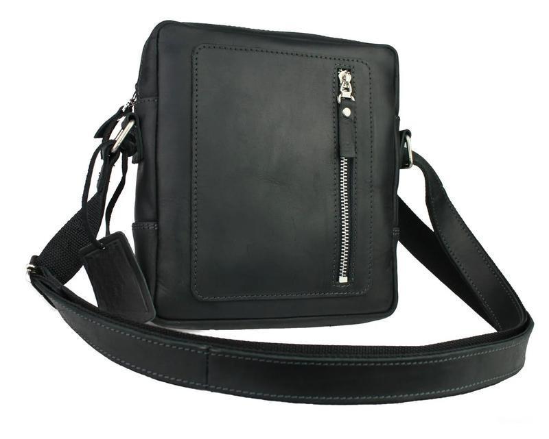 Чоловіча шкіряна сумка на плечі 11.91.27. Ручна робота. Натуральна шкіра. Одне велике відділення на блискавці з перегородкою і кишенею для мобільного. Спереду і ззаду - додаткові відділення на блискавці. Регульований плечовий ремінь обшитий шкірою. Шкіряні перегородки. Розмір (см): 21 * 19 * 5.