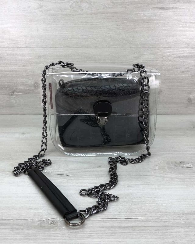 🔥 Силіконова Сумка з косметичкою чорний крокодил (нікель) 🔥 🔺 Арт. 56928-489 ▪ Матеріал: еко-шкіра, силікон ▪ Колір: чорний ▪ Розміри: маленький ▪ Жорсткість: середня ▪ Тип застібки: собачка ▪ Відділення: 1 відділення, косметичка ▪ Плечовий ремінь: немає ▪ Довжина: 19 див. ▪ Ширина: 9 див. ▪ Висота: 17 див. ▪ У наявності!
