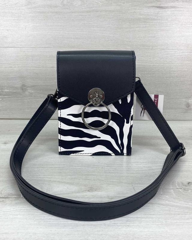 🔥 Клатч жіночий зебра 🔥 🔺 Арт. 61504-489 ▪ Матеріал: кожзам ▪ Колір: чорний з білим ▪ Розміри: маленький ▪ Жорсткість: середня ▪ Тип застібки: магніт ▪ Відділення: 1 відділення ▪ Плечовий ремінь: є ▪ Довжина: 13 див. ▪ Ширина: 5 див ▪ Висота: 19 див. ▪ В наявності