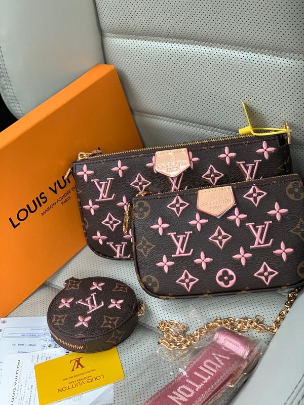 82090-2 Сумка 3 в 1 Вишивка - люкс модель! йде у коробці і пильовику і пакеті з лого ❗️ Забарвлення ремінців: ❤️Монограм темний хакі ремінець 💜 монограм з пудровка ремінцем ремінець регулюється в наявності і ланцюжок фурнітура з логотипами, всередині і зовні Логотипи Матеріал: канва Шкіра - люкс якість! Розміри :24/13 і 19/11 Брелок в комплекті