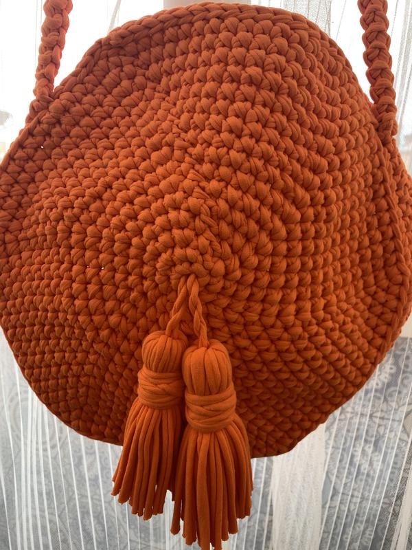 Одягнена була пару раз, яскравий мандариновий колір. Ширина і висота 36 см, довжина ручки вдвічі 40 см